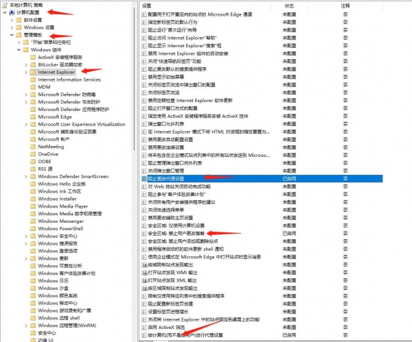 选择计算机配置,管理模板,Windows组件,Internet Explorer,启用3个策略